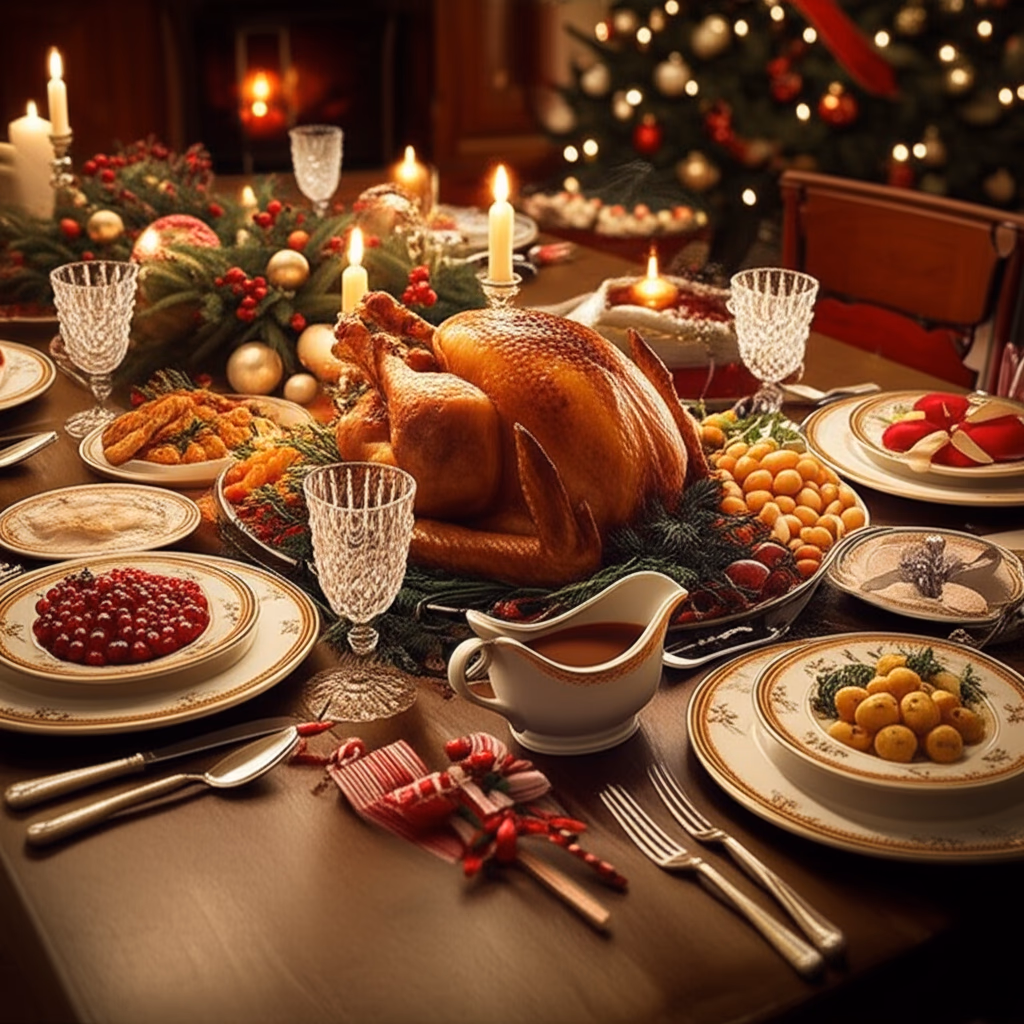 Christmas dinner table Free Images - Realistic AI Generated Images